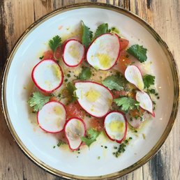 Spent a cozy evening in this neighborhood gem with friends who were minutes away from welcoming their first child (seriously--their baby arrived the next day). I'll always be grateful to them for introducing us to the deliciousness that exists within these walls: - Seeded Semolina Pita and Rye Pita: Could bread be any softer, fresher or more fragrant? I could eat 10 lbs of this every day. Mmmm, carb-tastic! - Dips: Baccala Caponata, Bottarga, Labneh. Fish lovers must get the Baccala and the Bottarga, while savory cream lovers will of course enjoy the labneh - Hamachi Crudo: There's never not a good time for crudo, but the middle of a heat wave is especially apt - Roasted Snap Peas: If all parents could cook snap peas like this, I guarantee no kid would reject their vegetables. Crisp, refreshing, minty, and fragrant--all with loads of vitamin K! - Dry Aged Lamb Meatballs: Classic and delicious - Fusilli: Don't bypass this because it sounds common. This is SHRIMP bolognese, son For a sweet after-finish, the Labneh Sorbet is all healthy granola meets antibacterial honey meets cardamom halva, and you know your mouth's going to be in flavor country. Get it.